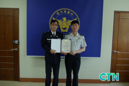¿¬±â°æÂû¼(¼Àå ¾ÈÁ¤±Õ)´Â 30(¸ñ), 2011³âµµ »ó¹Ý±â ¸ð¹ü°ø¹«¿øÀ¸·Î ¼±Á¤µÈ ±èÅÂÁ¤ °æÀ§¿¡°Ô ¸ð¹ü°ø¹«¿ø Áõ¼¿Í Æ÷ÀåÀ» Àü´ÞÇß´Ù.