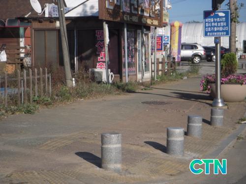 [žÈ/ctn] Ãæ³² žȱº žÈÀ¾ Æòõ¸® ¹æ¸é 4Â÷¼± Ⱦ´Üº¸µµ¿¡ ¼³Ä¡µÈ ÀÚµ¿Â÷ Àεµ ÁøÀÔ¹æÁö ±¸Á¶¹°ÀÎ º¼¶óµå(bollard)°¡ ¹Ù·Î ¼¼¿öÁ® Á¦ ¿ªÇÒÀ» ÇÏ°Ô µÆ´Ù.