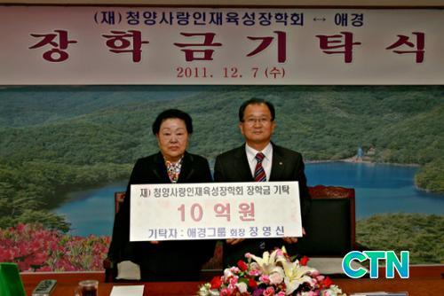 ¾Ö°æ±×·ì À念½ÅȸÀå, û¾ç»ç¶ûÀåÇÐ±Ý 10¾ï¿ø ±âŹ