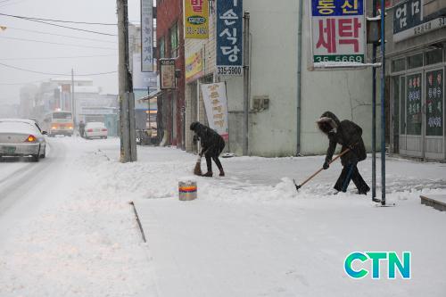 [¿¹»ê/ctn]Áö³ 1¿ù 31ÀÏ ¿¹»êÁö¿ª¿¡ ´ë¼³ÁÖÀǺ¸°¡ ³»·Á ¸¹Àº ´«ÀÌ ³»¸®´Â °¡¿îµ¥ ¿¹»êÀ¾ÀÇ ÁֹεéÀÌ Á¡Æ÷ ¾Õ Àεµ¿¡ ½×ÀÎ ´«À» Ä¡¿ì°í ÀÖ´Ù.