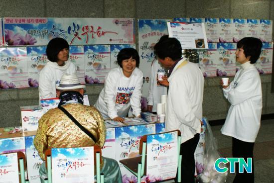 À̳¯ Çà»ç¿¡¼´Â 4¿ù 5ÀÏ ´ëÇÑ»ç¶û Çϴúû ¹«±ÃÈ Çà»ç ÃÊ´ëÀå°ú ¹«±ÃÈÂ÷(È÷ºñ½ºÄ¿½º)½ÃÀ½ ¹× ¹«±ÃÈ È«º¸ ºê·Î¼Å¸¦ ½Ã¹Îµé¿¡°Ô ³ª´² ÁÖ¸ç È«º¸ Çß´Ù.