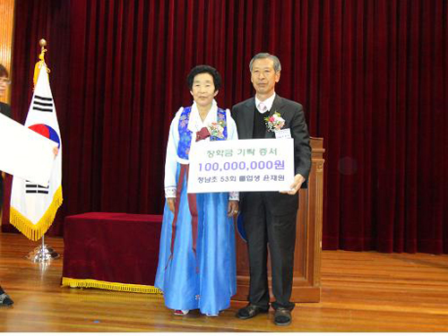 À̳¯ ±â³äÇà»ç¸¦ ÅëÇØ 53ȸ Á¹¾÷»ýÀÎ À±Àç¿ø ¾¾°¡ û³²ÃʵîÇб³¿¡ ÀåÇбâ±Ý 1¾ï¿ø ¹× ¹æ¼Û±â±â ±¸ÀÔºñ 3¹é¸¸¿øÀ» ±âŹÇÏ¿´´Ù. ¹Ù»Û ÀÏÁ¤À¸·Î ºñ·Ï Çà»ç¿¡ Âü¿©ÇÏÁö ¸øÇÏ¿© ¾Æ½¬¿üÁö¸¸, ¾î¸Ó´Ï(ÀÌ±â¼ø)°¡ ´ë½Å Âü¼®ÇÏ¿© ÀÚ¸®¸¦ ºû³» ÁÖ¾ú´Ù.