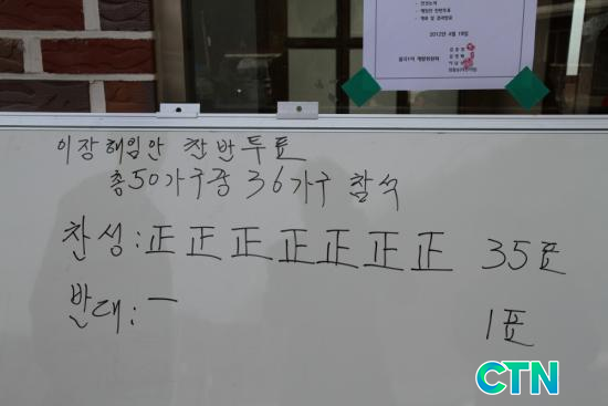 ÇÏÁö¸¸ ±× µÚ·Î "±è¸ð ÀÌÀåÀº Âù¼º Ãø Àλçµé¿¡°Ô ¸¶À»Á¤º¸¸¦ Á¦°øÇÏ°í ¸¶À»ÀÏÀ» µîÇѽÃÇÏ¸ç ¹Ý´ëÀÚµéÀ» ȸÀ¯¸Å¼öÇÏ·Á´Â µî ±è¸ð ÀÌÀåÀº ¸¶À»ÀϺ¸´Ù´Â ÀÚ½ÅÀÇ ÀÌÀÍÃß±¸¸¦ À§ÇØ ÀÌÀå ÀÚ¸®¸¦ º¸Á¸Çϰí ÀÖÀ½ÀÌ ¹àÇôÁ® ´õ ÀÌ»ó °°ÀÌ °¥¼ö ¾ø´Ù´Â ¸¶À»ÁֹεéÀÇ Àý¹ÚÇÑ ¸¶À½Çϳª·Î ÀÌÀå ºÒ½ÅÀÓ¾ÈÀ» »óÁ¤ÇÏ°Ô µÇ¾ú´Ù"°í ¸»Çß´Ù.