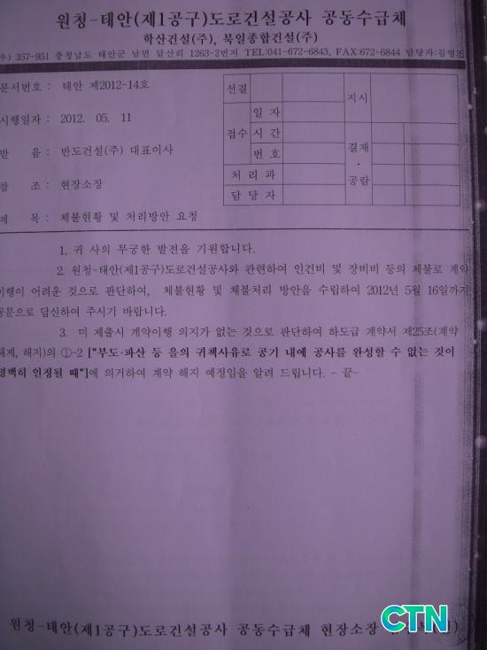 ½ÇÁ¦·Î ¿øÃ»-ÅÂ¾È °£ 1°ø±¸ µµ·Î°Ç¼³°ø»ç ÇöÀå¿¡¼ Á¤»óÀûÀ¸·Î Çϵµ±Þ °è¾àÀ» ü°áÇÑ Áö¿ª °Ç¼³»çÀÎ ¹Ýµµ°Ç¼³(ÁÖ)´Â ½Ã°ø»çÀÎ Çлê°Ç¼³(51%)°ú ºÏÀÏÁ¾ÇհǼ³(49%)·ÎºÎÅÍ Çϵµ±Þ °è¾à ÆÄ±â¸¦ À¯µµÇÏ´Â °ø¹®¼¸¦ ¹ÞÀº °ÍÀ¸·Î ³ªÅ¸³µ´Ù.