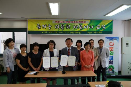 [¿¹»ê/ctn] (»ç)21¼¼±â±³À°¹®ÈÆ÷·³(ÀÌ»çÀå ¼»ó¸ñ)°ú ¿¹»ê±º´Ù¹®È°¡Á·Áö¿ø¼¾ÅÍ(¼¾ÅÍÀå ÃÖÇö¼÷)´Â ¡®±â¾ÆÀÚµ¿Â÷¿Í ÇÔ²²ÇÏ´Â ´Ù¹®È Ä¿¹Â´ÏƼ Ȱ¼ºÈ »ç¾÷¡¯ÀÇ È¿À²Àû ÃßÁøÀ» À§ÇÑ »óÈ£Çù·Â ¾÷¹«Çù¾à¼¸¦ 2012³â 9¿ù 1ÀÏ ¿ÀÀü 11½Ã ¿¹»ê´Ù¹®È¼¾ÅÍȸÀǽǿ¡¼ ü°áÇß´Ù.