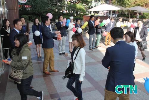 [´ëÀü/ctn] °¶·¯¸®¾Æ¹éÈÁ¡ ŸÀÓ¿ùµåÁ¡(Á¡Àå ¿ÀÀϱÕ)ÀÌ Ãß¼®À» º¸³»°í ÀÏÅÍ·Î Ãâ±ÙÇÏ´Â ÆÇ¸Å»ç¿øµéÀ» À§ÇÑ Áñ°Å¿î À̺¥Æ®¸¦ ÁøÇàÇß´Ù.