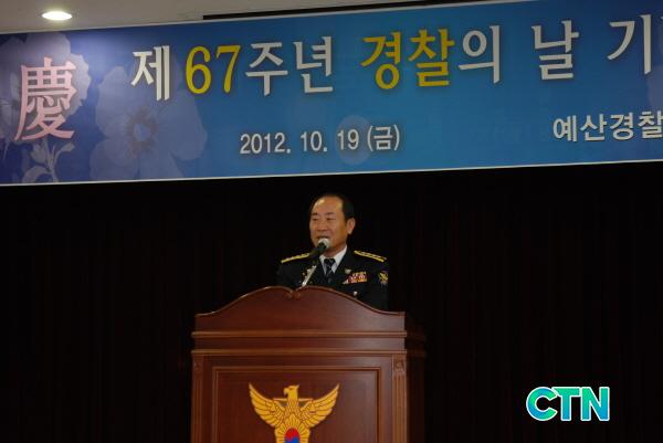 À̳¯ ±â³ä½Ä¿¡¼ ±èÅÃÁØ ¿¹»ê°æÂû¼ÀåÀº À̸í¹Ú ´ëÅë·É Ãà»ç¸¦ ´ëµ¶ÇÏ¿©, ¿¾ÇÇÑ ±Ù¹«È¯°æ¿¡¼µµ ¹¬¹¬È÷ ¸ÃÀº¹Ù ¼ÒÀÓÀ» ´ÙÇÏ´Â °æÂû°üµéÀÇ ³ë°í¸¦ Ä¡ÇÏÇϰí, ±¹¹ÎÀÌ ¹Ï°í ÀÇÁöÇÏ´Â ¡®½Å·Ú °æÂû¡¯, ºÒ¹ý°ú ºÒÀÇ¿¡ ¸Â¼´Â ¡®°øÁ¤ °æÂû¡¯, ±¹Å並 ÁöŰ´Â ¡®È£±¹ °æÂû¡¯ÀÌ µÅÁֱ⸦ ¹Ù¶ó¸ç Á¦67Áֳ⠰æÂûÀÇ ³¯À» ÃàÇÏÇÏ¿´´Ù.