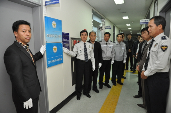 [û¾ç/ctn]û¾ç°æÂû¼(¼Àå Á¶¿µ¼ö)´Â 22ÀÏ ¿ÀÀü 10½Ã ¼ö»ç°ú Áö´ÉÆÀ »ç¹«½Ç ¾Õ¿¡¼ ¼Àå, °¢ °úÀå, Á÷¿ø µîÀÌ Âü¼®ÇÑ °¡¿îµ¥ Á¦18´ë ´ë¼± ¡®¼±°Å»ç¹ü ¼ö»ç»óȲ½Ç¡¯ ÇöÆÇ½ÄÀ» °¡Á³´Ù.