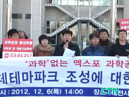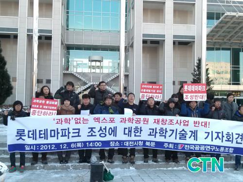 [»çȸ/ctn] Á¤Á¾ÀÏ ±âÀÚ = 15°³ ½Ã¹Î´Üü·Î ±¸¼ºµÈ Àü±¹°ø°ø¿¬±¸³ëµ¿Á¶ÇÕ(À§¿øÀå À̼º¿ì)Àº ´ëÀü¿¢½ºÆ÷°úÇаø¿ø³»¿¡ ÃßÁøÁßÀÎ ·Ôµ¥Å׸¶ÆÄÅ© Á¶¼º¿¡ ´ëÇØ "¿¢½ºÆ÷ °úÇаø¿ø ÀçâÁ¶»ç¾÷¿¡ ¡®°úÇС¯ÀÌ ¾ø´Ù"°í ¹àÈ÷°í ¹Ý´ë ÀÔÀåÀ» ³Â´Ù.