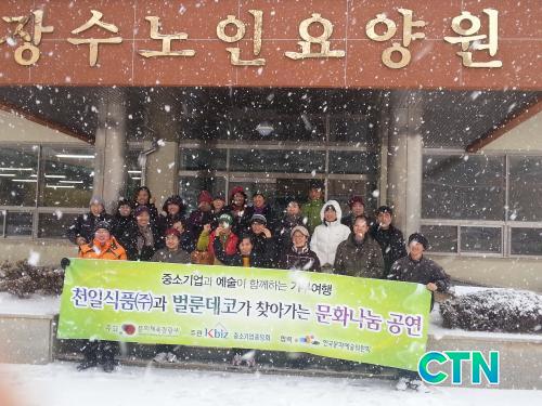 Àå¼ö³ëÀοä¾ç¿ø ¹ÚÇöÁÖ ¿øÀåÀº "±â°ü¼º°Ý»ó ¾î¸£½ÅµéÀÌ ´ëºÎºÐÀ̶ó Æò¼Ò ±¹¾ÇÀ̳ª ³ë·¡±³½Ç µîÀÇ °ø¿¬Àº ¸¹ÀÌ ¿¸®°í Àִµ¥ À̹øÃ³·³ »÷µå¾ÆÆ®³ª dz¼±¸¶ÀÓ µî Æò¼Ò Á¢ÇÒ ¼ö ¾ø¾ú´ø ¹®È°ø¿¬À» °ü¶÷ÇÏ°Ô µÇ¾î ¾î¸£½ÅµéÀÌ ³Ê¹«³ª ½Å±âÇØ Çϰí Àç¹ÌÀÖ¾î Çϼ̴Ù"¸ç, ƯÈ÷ ´«ÀÌ ¸¹ÀÌ ³»·Á¼ ÀÏÁ¤ÀÌ Ãë¼ÒµÉ ÁÙ ¾Ë¾Ò´Âµ¥ ÀÌ·¸°Ô ã¾Æ¿Í °ø¿¬°ú ±âºÎ¹°Ç°À» Àü´ÞÇØ ÁÖ´Ï ³Ê¹«³ª Å« ¼±¹°À» ¹ÞÀº °Í °°¾Æ ÇູÇÏÁö¸¸ ´«±æ¿¡ µ¹¾Æ°¡¼Å¾ß ÇÏ´Â ºÐµéÀ» »ý°¢ÇÏ¸é °ÆÁ¤ÀÌ µÈ´Ù¸ç, µ¹¾Æ°¡´Â ±â¾÷ Á÷¿øµé°ú °ø¿¬´Üü¸¦ À§ÇØ ¾ÈÀü¿îÇàÀ» °Åµì ´çºÎÇÏ¸ç °¨»çÀλ縦 ÀüÇß´Ù.