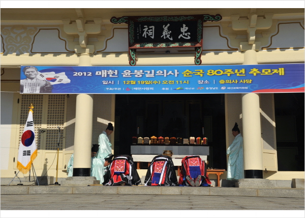 ÇÑÆí ÃÖ½Â¿ì ¿¹»ê±º¼ö´Â Ã߸ð»ç¸¦ ÅëÇØ ¡° µ¿ºÏ¾Æ Æòȸ¦ À§ÇùÇÏ´Â ÀϺ» Á¦±¹ÁÖÀÇ¿¡ Ç×°ÅÇϰí, Á¶±¹ÀÇ µ¶¸³À» À§ÇØ ¸ñ¼ûÀ» ´øÁø ¸ÅÇå À±ºÀ±æ Àǻ簡 ¼ø±¹ÇÑÁö 80³âÀÌ µÇ´Â ¶æ±íÀº ³¯·Î½á ¾ÕÀ¸·Î À± ÀÇ»çÀÇ °í±ÍÇÑ ¶æÀ» Èļ¼¿¡ ±æÀÌ º¸ÀüÇØ ±Í°¨ÀÌ µÇµµ·Ï ÇØ¾ß ÇÑ´Ù"°í ¸»Çß´Ù.