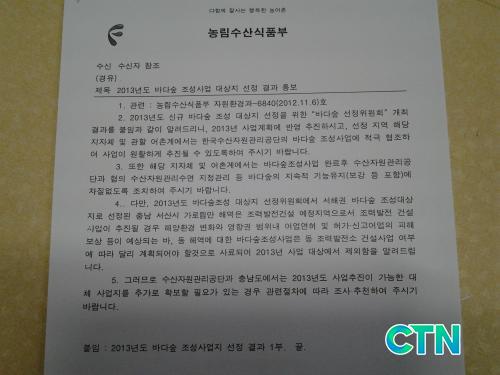 ³ó¸²¼ö»ê½ÄǰºÎ´Â °ø¹®¼¸¦ ÅëÇØ 2013³âµµ ¹Ù´Ù ½£ Á¶¼º»ç¾÷ ´ë»óÁö °á°ú¸¦ Å뺸ÇÏ¸é¼ Áö³´Þ 23ÀÏ ¹Ù´Ù ½£ ¼±Á¤À§¿øÈ¸°¡ ¼±Á¤ÇÑ Ãæ³² ¼»ê½Ã Áö°î¸é µµ¼º¸® ÀÏ¿ø °¡·Î¸²¸¸ ÀÏ¿ø¿¡ ´ëÇÑ ¹Ù´Ù ½£ Á¶¼º»ç¾÷Áö°¡ »ç¾÷ ´ë»óÁö¸¦ Á¦¿ÜÇÑ´Ù°í ¹àÇû´Ù.