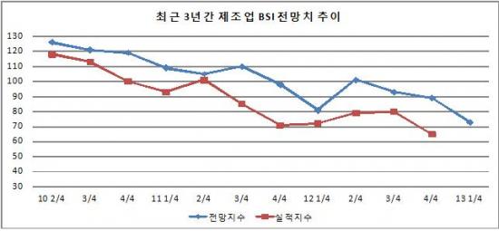 ´ëÀü»ó°øÈ¸ÀǼÒ(ȸÀå ¼ÕÁ¾Çö)°¡ ÃÖ±Ù Áö¿ª Á¦Á¶¾÷ü 400°³»ç¸¦ ´ë»óÀ¸·Î '2013³â 1/4ºÐ±â ±â¾÷°æ±â Àü¸Á' Á¶»ç¸¦ ½Ç½ÃÇÑ °á°ú, ±â¾÷°æ±â½Ç»çÁö¼ö(BSI ; Business Survey Index)°¡ ±âÁØ ¼öÄ¡(100) ÀÌÇÏÀÎ '74'·Î Áý°èµÆ´Ù.