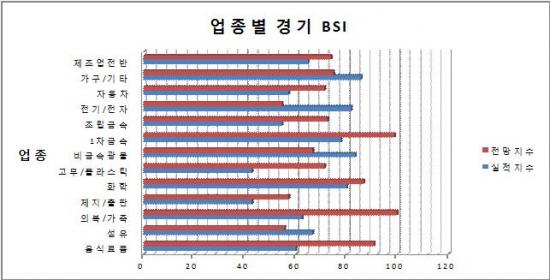 ±â¾÷°æ±â½Ç»çÁö¼ö(BSI)´Â ±â¾÷µéÀÇ ÇöÀåü°¨°æ±â¸¦ ¼öÄ¡ÈÇÑ °ÍÀ¸·Î 0~200»çÀ̷Πǥ½ÃµÇ¸ç, 100 ÀÌ»óÀÏ ¶§´Â °æ±â°¡ ÀüºÐ±â¿¡ ºñÇØ È£ÀüµÉ °ÍÀ¸·Î ¿¹»óÇÏ´Â ±â¾÷ÀÌ ´õ ¸¹À½À» ÀǹÌÇϸç, 100 ¹Ì¸¸ÀÌ¸é ±× ¹Ý´ë¸¦ ³ªÅ¸³½´Ù.