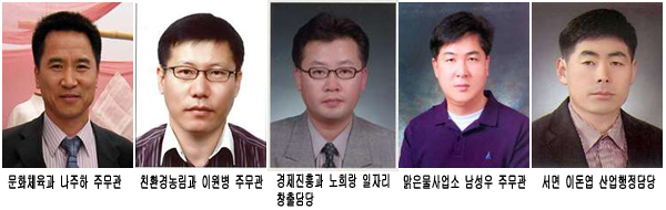 ±º¿¡ µû¸£¸é ½ÉÀÇȸ °á°ú À¸¶ä°ø¹«¿øÀ¸·Î ¹®ÈüÀ°°ú ³ªÁÖÇÏ ÁÖ¹«°ü, ģȯ°æ³ó¸²°ú ÀÌ¿øº´ ÁÖ¹«°ü, °æÁ¦ÁøÈï°ú ³ëÈñ¶û ÀÏÀÚ¸®Ã¢Ãâ´ã´ç, ¸¼Àº¹°»ç¾÷¼Ò ³²¼º¿ì ÁÖ¹«°ü, ¼¸é À̵·¿± »ê¾÷ÇàÁ¤´ã´çÀÌ ¼±Á¤µÆ´Ù.