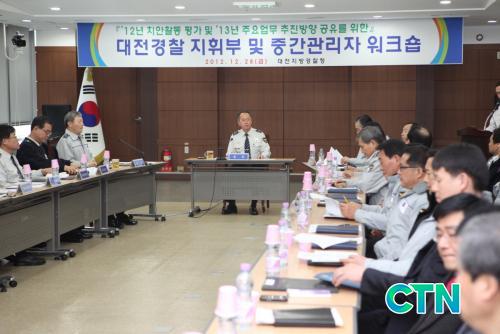 À̹ø ¿öÅ©¼óÀº ´ëÀü°æÂûÀÇ 2012³â ÁÖ¿ä Ä¡¾È¼º°ú¸¦ µ¹¾Æº¸°í 2013³âÀÇ ÁÖ¿ä¾÷¹« ÃßÁø¹æÇâ ¹× ÇÙ½É ÃßÁø°úÁ¦¸¦ °øÀ¯ÇØ '½Ã¹Î¼ÓÀÇ ´ëÀü°æÂû' ±¸ÇöÀ» À§ÇÑ ÁöÈֺΠ¹× Áß°£°ü¸®ÀÚÀÇ °ø°¨´ë Çü¼º ¹× ÀÇÁö °áÁýÇϱâ À§ÇÑ È¸ÀǷμ, ¿À´Â 2013³â µé¾î¼´Â »õÁ¤ºÎ¿Í ÇÔ²² ´ëÀü°æÂûÀÌ ³ª¾Æ°¡¾ß ÇÒ ¹æÇâµîÀ» ÅäÀÇÇß´Ù°í ¹àÇû´Ù.