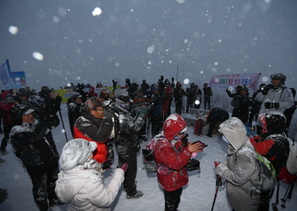 »õº®ºÎÅÍ ¸¹Àº ´«ÀÌ ³»·Á ¹à°Ô ¶°¿À¸£´Â Èñ¸ÁÂù »õÇØ¸¦ º¸±â À§ÇØ Ä¥°©»ê Á¤»óÀ» ãÀº ±º¹Î°ú °ü±¤°´µéÀº ¾Æ½¬¿òÀ» µÚ·Î ÇÑ Ã¤ »õÇØ ¼Ò¿øÀ» ºô¾ú´Ù.