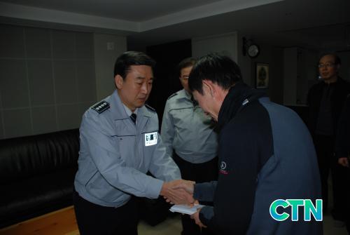 [ÃæÁÖ/ctn]ÃæÁÖ°æÂû¼(¼Àå ŰæÈ¯) Á÷¿øµéÀÌ Åõº´ÁßÀÎ µ¿·á °æÂû°üÀ» À§ÇØ ¼º±ÝÀ» Àü´ÞÇÏ´Â µî ³²´Ù¸¥ µ¿·á¾Ö·Î ÁÖÀ§¿¡ ÀÜÀÜÇÑ °¨µ¿À» ÁÖ°í ÀÖ´Ù.
