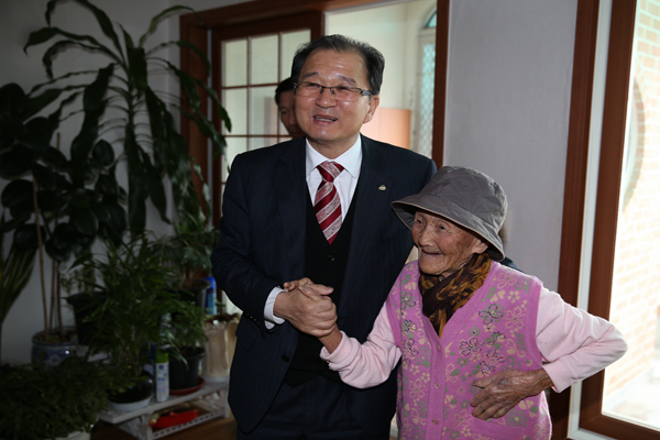 À̳¯ ÀÌ ±º¼ö´Â 100¼¼ ÀÌ»ó ¹®À»Èñ(101¼¼, ³²¾ç¸é), ÃÖÀ»·Ê(101¼¼, ¿î°î¸é) ¾î¸£½ÅÀÇ °¡Á¤À» ¹æ¹®ÇØ ¾î¸£½ÅµéÀÇ ¼ÕÀ» ²À Àâ°í °Ç°»óÅÂ¿Í ÀÏ»ó»ýȰ¿¡ ´ëÇØ ¾ÈºÎ¸¦ ¹°¾ú´Ù.