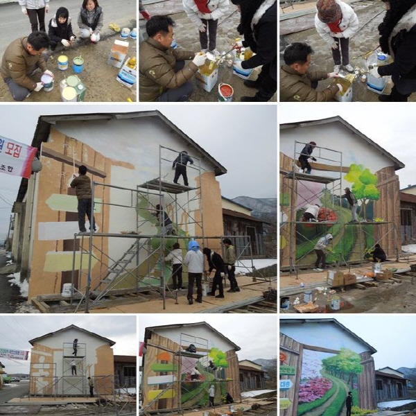 ÀÌ ±×¸²Àº ´ëÈï½½·Î½ÃƼ ¸¶À»°æ°ü Á¤È»ç¾÷ÀÇ ÀÏȯÀ¸·Î Çѱ¹¹Ì¼úÇùȸ ¿¹»ê±ºÁöºÎ ȸ¿øµéÀÌ ½½·Î½ÃƼ ´ëÈïÀ» ¾Ë¸®´Â È»çÇÑ º®È¸¦ ±×·Á ³ÖÀº °ÍÀÌ´Ù.