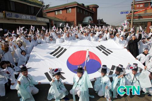 ¿ÃÇØ·Î ¿©¼¸ ¹øÂ°¸¦ ¸Â´Â À̹ø Çà»ç´Â ¿ÀÀü 10½Ã, 3.1¿îµ¿À» ¾Ë¸®´Â ¹æ¼Û¸àÆ®¸¦ ½ÃÀÛÀ¸·Î µ¶¸³¼±¾ð¼ ³¶µ¶°ú À̸¦ ¹æÇØÇÏ´Â ÆÛÆ÷¸Õ½º°¡ ÀÌ·ïÁø´Ù.
