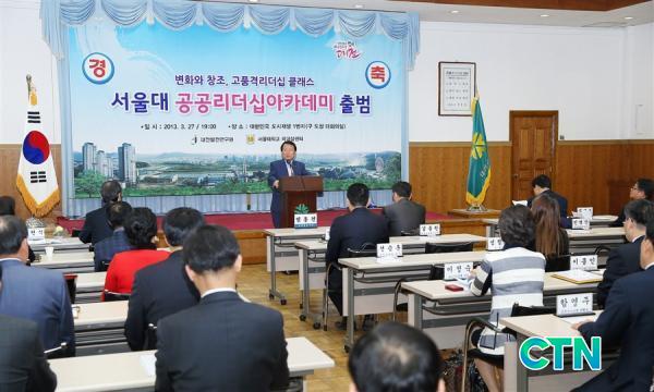 [»çȸ/ctn] ´ëÀü¹ßÀü¿¬±¸¿ø(¿øÀå ÀÌâ±â)ÀÌ ÁÖ°üÇÏ°í ¼¿ï´ë ¸®´õ½Ê¼¾ÅͰ¡ ÁøÇà․ ÈÄ¿øÇÏ´Â ¼¿ï´ë °ø°ø¸®´õ½Ê¾ÆÄ«µ¥¹Ì°¡ Áö³ 27ÀÏ ¿ÀÈÄ 7½Ã ¿¾ Ãæ³²µµÃ» ´ëȸÀǽǿ¡¼ Á¦1±â °³°½ÄÀ» °®°í 8°³¿ù°£ÀÇ ±³À°°úÁ¤À» ½ÃÀÛÇß´Ù.