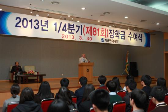 [°æÁ¦/ctn] °è·æÀåÇÐÀç´Ü (°è·æ°Ç¼³ ¸í¿¹È¸Àå ÀÌÀα¸)Àº 30ÀÏ ¿ÀÀü 10½Ã °è·æ°Ç¼³ °´ç¿¡¼ ±è½ÅÈ£ ±³À°°¨, Àç´ÜÀÓ¿ø, Çлý․Çкθ𡤱³»ç µî 250¿©¸íÀÌ Âü¼®ÇÑ °¡¿îµ¥ 189¸íÀÇ °íµî¡¤´ëÇлý¿¡°Ô 2013³âµµ 1/4ºÐ±â ÀåÇÐ±Ý 1¾ï 9õ 505¸¸ 9,200¿øÀ» Áö±ÞÇÑ´Ù.