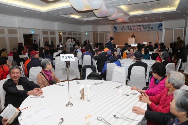 [¾Æ»ê/ctn](»ç)ÃæÃ»³²µµ ½Ã°¢Àå¾ÖÀÎ ¿¬ÇÕȸ ¾Æ»ê½ÃÁöȸ(ȸÀå ±èÀ縸)´Â Áö³ 2ÀÏ ¿Â¾ç±×·£µåÈ£ÅÚ¿¡¼ ½Ã°¢Àå¾ÖÀο¬Çùȸ ¾Æ»ê½ÃÁöȸ ⸳ 20Áֳ⠱â³äÇà»ç¸¦ °¡Á³´Ù.