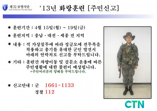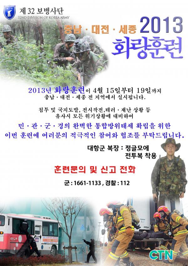 [»çȸ/ctn] À°±º Á¦32º¸º´»ç´ÜÀº ¿À´Â15ÀϺÎÅÍ 19ÀϱîÁö Ãæ³²∙´ëÀü∙¼¼Á¾½Ã Àü Áö¿ª¿¡¼ 2013³â ȶûÈÆ·ÃÀ» ½Ç½ÃÇÑ´Ù°í ¹àÇû´Ù.