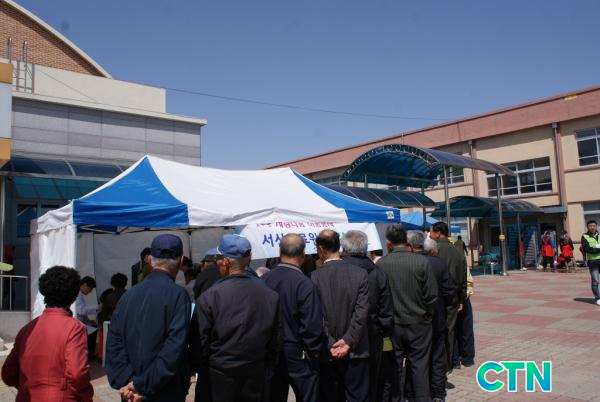 Áö³ 14ÀÏ ¼»ê½Ã °íºÏ¸é¿¡ À§Ä¡ÇÑ °íºÏÃʵîÇб³ ¿îµ¿Àå¿¡ Àӽ÷Π¼³Ä¡µÈ õ¸· ÁÖÀ§·Î ¸¹Àº ÁֹεéÀÌ ÁÙÁö¾î ¼ø¼¸¦ ±â´Ù¸®°í ÀÖ´Â Àå¸éÀÌ ¸ñ°ÝµÆ´Ù.