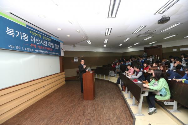 À̳¯ °Á¿¡¼ º¹ ½ÃÀåÀº 100¿© ¸íÀÇ ÇлýÀÌ Âü¼®ÇÑ °¡¿îµ¥ ¡®½Ã¹ÎÀÌ ÇູÇÑ µµ½Ã, ¾Æ»êÀÇ ¹Ì·¡ºñÀü'À̶õ ÁÖÁ¦·Î °ÀǸ¦ Çß´Ù.