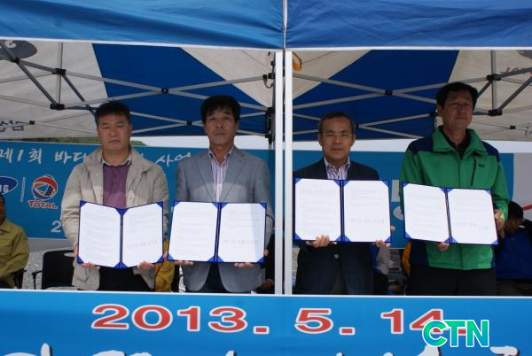 ÇÑÆí À̳¯ »ï¼ºÅäÅ»¡¤´ë»êÀ¾¹ßÀüÇùÀÇȸ¡¤´ë»ê°ø´Ü»ó»ý¹ßÀüÇùÀÇȸ¡¤È°î¾îÃ̰è´Â ¾î¾÷»ý»ê¼º Çâ»óÀ» À§ÇÑ Çù¾à½ÄÀ» °®°í, »ï±æÆ÷Ç×°ú °¡·Î¸²¸¸ ÀÏ¿ø ¹Ù´Ù¿¡¼ Ä¡¾î¸¦ ¹æ·ùÇß´Ù.