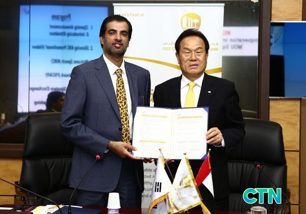 [°æÁ¦/ctn] Á¤Á¾ÀÏ ±âÀÚ = Çѱ¹³ó¾îÃ̰ø»ç(»çÀå ¹ÚÀç¼ø)¿Í ¾Æ¶ø¿¡¹Ì¸®Æ®¿¬ÇÕ(UAE) ¾ÆºÎ´Ùºñ ½Ä·®¾Èº¸¼¾ÅÍ(´ëÇ¥ Ä®¸®ÆÄ ¾ÆÈå¸Þµå ¾Ë ¾Ë¸®(Khalifa Ahmed Al Ali))´Â 4ÀÏ °æ±âµµ Àǿսà º»»ç¿¡¼ ³ó¾÷°³¹ß MOU¸¦ ü°áÇϰí, ½Ä·®¾Èº¸ È®º¸¸¦ À§ÇÑ ÇØ¿Ü³óÀå°³¹ß¿¡ °øµ¿ Çù·ÂŰ·Î Çß´Ù°í ¹àÇû´Ù.