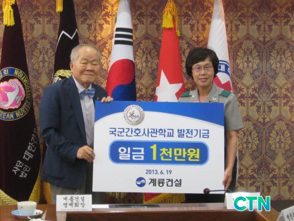 [°æÁ¦/ctn] Á¤Á¾ÀÏ ±âÀÚ = ÀÌÀα¸ °è·æ°Ç¼³ ¸í¿¹È¸Àå(6.25 ÂüÀü, ¿¹ºñ¿ª Áß·É)Àº 19ÀÏ ¿ÀÀü 11½Ã ´ëÀü À¯¼º±¸¿¡ ÀÖ´Â ±¹±º°£È£»ç°üÇб³(ÀÌÇÏ ±¹°£»ç)¸¦ ¹æ¹®ÇØ ¹Ú¸íÈ Çб³Àå(ÁØÀå)¿¡°Ô ¹ßÀü±â±Ý 1õ¸¸¿øÀ» Àü´ÞÇß´Ù.