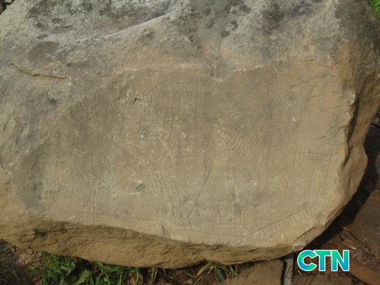 ¾Ï°¢È´Â °¡·Î 1m, ¼¼·Î 80§¯ Å©±âÀÇ µÕ±×·± ¹ÙÀ§ÀÇ ÇÑ ¸é¿¡ ±×·ÁÁø ±×¸²À¸·Î, ±×·ÁÁø ¸éÀº °¡·Î 61§¯, ¼¼·Î 35§¯ Å©±â·Î ³¯Ä«·Î¿î ±Ý¼Óµµ±¸ µîÀ¸·Î °¡´Â ¼±À» ±×¾î Çü»óÀ» ¸¸µç ¼¼¼±°¢È·Î ÃßÁ¤µÈ´Ù.