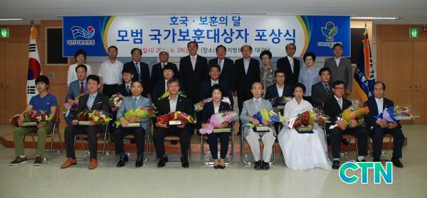 [»çȸ/ctn] 6¿ù È£±¹º¸ÈÆÀÇ ´ÞÀ» ±âÇÏ¿© ¸ð¹ü ±¹°¡À¯°øÀÚ µî¿¡ ´ëÇÑ °Ý·Á¿Í °¨»ç¸¦ À§ÇÑ ±¹°¡º¸ÈÆÃ³Àå Æ÷»óÀü¼ö½ÄÀÌ 28ÀÏ ¿ÀÀü11½Ã ´ëÀüÁö¹æº¸ÈÆÃ»(ûÀå ¹Îº´¿ø)¿¡¼ ´ëÀü¡¤Ãæ³² º¸ÈÆ´ÜüÀå°ú °¡Á· ¹× Ä£Áö µî 70¿©¸íÀÌ Âü¼®ÇÑ °¡¿îµ¥ Àü¼öµÆ´Ù.