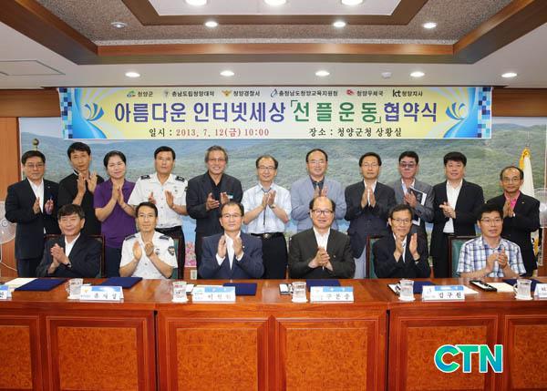 À̳¯ Çù¾à½ÄÀº û¾ç±º(±º¼ö À̼®È), Ãæ³²µµ¸³Ã»¾ç´ëÇÐ(ÃÑÀå ±¸º»Ãæ), û¾ç°æÂû¼(¼Àå À¯À缺), û¾ç±³À°Áö¿øÃ»(±³À°Àå ±è±¸¿ø), û¾ç¿ìü±¹(±¹Àå ±èÁ¾Âù), KTû¾çÁö»ç(Áö»çÀå ȲÀÎÇü)°¡ Âü¼®ÇØ ¾Æ¸§´Ù¿î ÀÎÅͳݼ¼»óÀ» ¸¸µé±â À§ÇÑ ¼±Çÿ Çù¾àÀ» ü°áÇß´Ù.