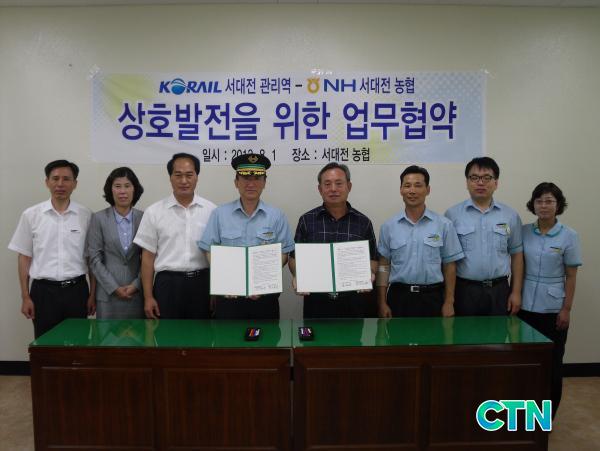 [°æÁ¦/ctn]ÄÚ·¹ÀÏ ´ëÀüÃæ³²º»ºÎ ¼´ëÀü¿ªÀº 3ÀÏ ¼´ëÀü³óÇùÁ¶ÇÕÀå½Ç¿¡¼ ¼´ëÀü¿ª Á÷¿ø, ¼´ëÀü³óÇù °ü°èÀÚ µî 10¿©¸íÀÌ Âü¼®ÇÑ °¡¿îµ¥ ¾ç ±â°üÀÌ »óÈ£Çù·ÂÀ» ´ÙÁüÇÏ´Â ¾÷¹«Çù¾à(MOU) ü°á½ÄÀ» °¡Á³´Ù.