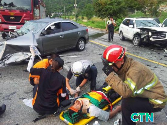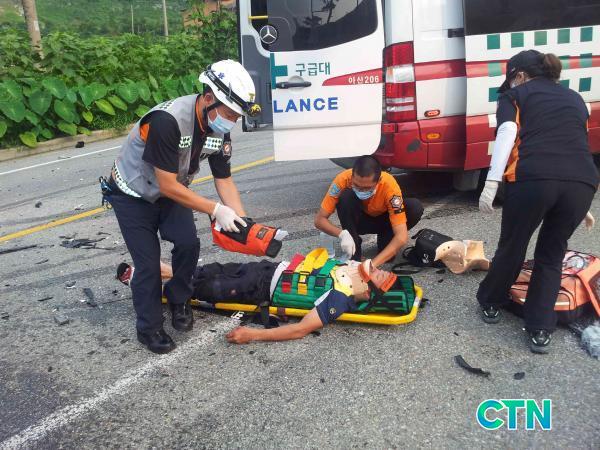 [¾Æ»ê/ctn]¾Æ»ê¼Ò¹æ¼(¼Àå ±èºÀ½Ä)´Â Áö³ 11ÀÏ 16½Ã 50ºÐ °æ ¹è¹æÀ¾ ¼öö¸® °íºÒ·Î µµ·Î»ó Â÷ ´ë Â÷ Ãæµ¹ ±³Åë»ç°í Áö·ÉÁ¢¼ö ÈÄ Áï½Ã ÇöÀå Ãâµ¿ÇØ »ç°íÀÚ ÇѸð¾¾(³², 13¼¼) µî 5¸íÀ» ±¸Á¶Çß´Ù.