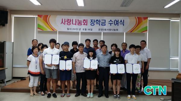 [¾Æ»ê/ctn]¿Â¾ç3µ¿(µ¿Àå À¯¿ëÀÏ)°ú »ç¶û³ª´®È¸(ȸÀå ÀÌÁ¤È£)´Â Áö³ 14ÀÏ Áֹμ¾ÅÍ¿¡¼ ¿Â¾ç3µ¿ ÇູŰ¿ò ÀåÇÐ±Ý ¼ö¿©½ÄÀ» °¡Á³´Ù.