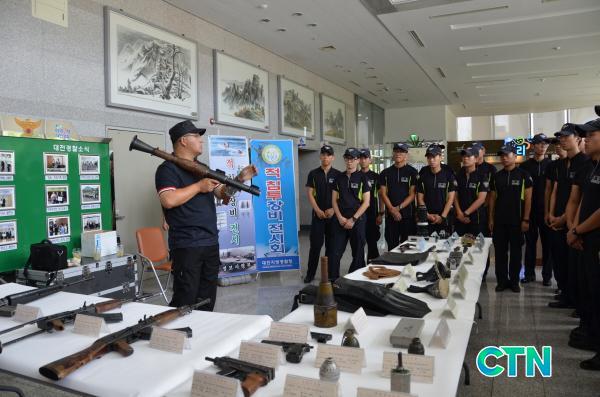 ´ëÀüÁö¹æ°æÂûû(ûÀå Á¤¿ë¼±)Àº 2013³â À»Áö¿¬½À ±â°£ Áß 19ÀÏ ´ëÀüÁö¹æ°æÂûû 1Ãþ ·Îºñ¿¡¼ ³»¹æ ¹Î¿øÀÎ ¹× °æÂû°ü ´ë»ó, ±¹°¡¾Èº¸ÀÇ Á߿伺¿¡ ´ëÇÑ ±¹¹ÎÀû °ø°¨´ë¸¦ È®»ê ÇϰíÀÚ ºÏÇѱº ħÅõ ¹«±â·ù ¹× À°»ó¡¤ÇØ»ó ħÅõÀåºñ 50¿©Á¡°ú Å×·¯¡¤´ëħÅõ »çÁø 15Á¡ µî ÃÑ 65Á¡¿¡ ´ëÇÑ Àü½Ãȸ¸¦ °¡Á³´Ù.