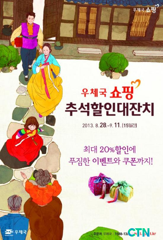 [°æÁ¦/ctn] ÃæÃ»Áö¹æ¿ìÁ¤Ã»(ûÀå ±è¿µ¼ö)Àº ¿À´Â 28ÀϺÎÅÍ 9¿ù 11ÀϱîÁö 15ÀÏ °£ '¿ìü±¹¼îÇÎ Ãß¼® ÇÒÀδëÀÜÄ¡'¸¦ ¿°í ÆÈµµÆ¯»ê¹° 5,500¿©Á¾ÀÇ »óǰÀ» ÃÖ´ë 20%±îÁö ÇÒÀÎ ÆÇ¸ÅÇÑ´Ù°í ¹àÇû´Ù.