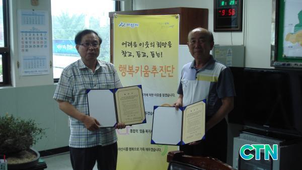 [¾Æ»ê/ctn]¾Æ»ê½Ã ¿Â¾ç6µ¿ ÇູŰ¿òÃßÁø´Ü(´ÜÀå ÀÌÁ¾¼ö)Àº Áö³´Þ 29ÀÏ Áֹμ¾ÅÍ¿¡¼ °ü³» ¿ì¸®Ò®ÇÑ¾à¹æ(¿øÀå ¿À¼¼³²)°ú ÇູŰ¿ò Çù¾àÀ» ¸Î¾ú´Ù.