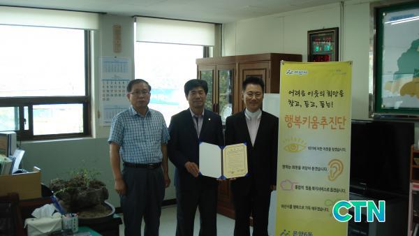 [¾Æ»ê/ctn]¾Æ»ê½Ã ¿Â¾ç6µ¿ ÇູŰ¿òÃßÁø´Ü(´ÜÀå ÀÌÁ¾¼ö)°ú ¼øÃµÇâÀÇ¿ø(¿øÀå ¹®Ã¶Áø)Àº Áö³ 9ÀÏ Áֹμ¾ÅÍ¿¡¼ ÇູŰ¿òÇù¾àÀ» ¸Î¾ú´Ù.