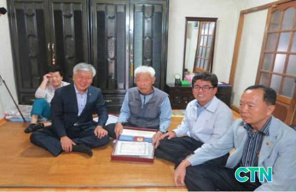 À̹ø¿¡ ÀÌ ½ÃÀåÀÌ ¹æ¹®ÇÑ ±¹°¡À¯°øÀÚ´Â 6¡¤25ÀüÀï ´ç½Ã ±ÝÈÁö±¸ ÀüÅõ¿¡ ÂüÀüÇØ ¹«°øÈÆÀåÀ» ¹Þ°í, À̾î Áö¸®»ê °øºñÅä¹úÀÛÀü¿¡ Âü¿©ÇØ °øºñ ¼ÒÅÁ¿¡ Å« °øÀ» ¼¼¿ö µÎ ¹øÂ° ¹«°øÈÆÀåÀ» ¼ö¿© ¹ÞÀº °Á¤ÀÏ 6¡¤25ÂüÀüÀ¯°øÀÚ(80¼¼, °øÁÖ)´Ù.
