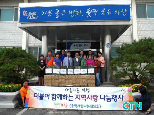 [»çȸ/ctn]¼Û¾ÇÇູŰ¿ò ÃßÁø´Ü°ú ¼Û¾Ç»ç¶û³ª´®ÇùÀÇȸ´Â Áö³ 13ÀÏ Ãß¼®À» ¸Â¾Æ °ü³» µ¶°Å³ëÀÎ 75¼¼´ë¸¦ ¹æ¹®ÇØ ¼ÛÆí(200¸¸¿ø »ó´ç)°ú »ýÇÊǰ ¼±¹°¼¼Æ®(250¸¸¿ø »ó´ç)¸¦ °¢ ¼¼´ë¿¡ Àü´ÞÇØ dz¿ä·Ó°í Á¤ÀÌ ³ÑÄ¡´Â Ãß¼®À» º¸³¾ ¼ö ÀÖµµ·Ï °Ý·ÁÇß´Ù.