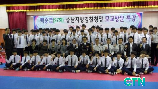 [¿¹»ê/ctn] ¹é½Â¿± Ãæ³²Ã»ÀåÀº 24ÀÏ ¸ð±³ÀÎ Ãæ³² ¿¹»êÁßÇб³¸¦ ¹æ¹®ÇØ 100¿©¸íÀÇ Çлýµé Âü¼®ÇÑ °¡¿îµ¥ 'ÇູÇÑ ¹Ì·¡¸¦ À§ÇÑ Ã»¼Ò³âÀÇ ÀÚ¼¼'¶ó´Â ÁÖÁ¦·Î Ư°À» °¡Á³´Ù.
