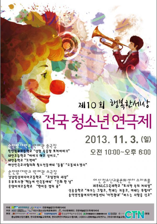 ¾Æ»ê½Ã¿Í ¼øÃµÇâ´ëÇб³¡¤Àü¹®¿¹¼ú¹ýÀÎ(ÁÖ)¶¼¾Æ¾¾³×°¡ ÁÖÃÖÇÏ°í ¼øÃµÇâ´ëÇб³ ¹®È¿¹¼ú±³À°¿¬±¸¼Ò¿Í ¾Æ»ê½Ãû¼Ò³â±³À°¹®È¼¾ÅÍ¡¤¾Æ»ê¹®ÈÀç´ÜÀÌ ÁÖ°üÇÏ´Â Á¦10ȸ ÇູÇѼ¼»ó Àü±¹ û¼Ò³â ¿¬±ØÁ¦ º»¼±ÁøÃâÆÀÀº ÃÑ 10°³ ÆÀÀ¸·Î ´ÙÀ½°ú °°´Ù.