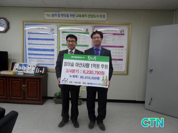 [¾Æ»ê/ctn]ÇÏÀÌÆ®Áø·Î(ÁÖ)´Â(õ¾ÈÁöÁ¡Àå À̰èÇÐ) 31ÀÏ 11½Ã ¾Æ»ê½Ã ±è¿ë¹è ±³À°º¹Áö±¹ÀåÀ» ¹æ¹®, 'ÂüÀ̽½ ¾Æ»ê»ç¶û 1¾ï¿ø ÈÄ¿ø' 3ºÐ±â Àû¸³ÈÄ¿ø±Ý 623¸¸¿øÀ» Àü´ÞÇß´Ù.