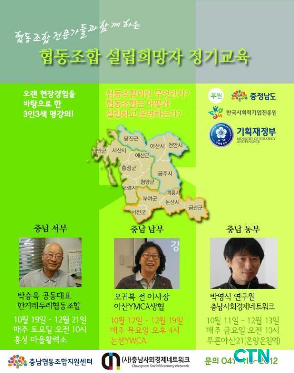 ÃæÃ»³²µµ, Çѱ¹»çȸÀû±â¾÷ÁøÈï¿ø ÈÄ¿øÀ¸·Î Çùµ¿Á¶ÇÕ¼³¸³Èñ¸ÁÀÚ ±³À°Àº Áö³ 10¿ù 11ÀϺÎÅÍ 12¿ù 21ÀϱîÁö Ãæ³² ¼ºÎ, µ¿ºÎ, ³²ºÎ µî 3±Ç¿ªÀ¸·Î ³ª´² ¡ã¾Æ»ê(Ǫ¸¥¾Æ»ê21)¡ãÈ«¼º(È«µ¿¸¶À»È°·Â¼Ò)¡ã³í»ê(YWCA)¿¡¼ °íÁ¤ÀûÀ¸·Î °¢°¢ 10ȸ¾¿ ÁøÇàÇÑ´Ù.